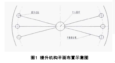 4、拱頂安裝完成后,在第1圈壁板下緣處安裝脹圈工裝卡具,用于罐體的撐圓和提升;接著安裝邊柱、中心桅桿、電動葫蘆及平衡鋼絲繩等提升機構,并把電動葫蘆的倒鏈掛在脹圈工裝卡具的吊鉤上,然后對提升機構進行預緊。