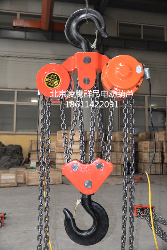 7、起吊運行過程中隨時觀察有無卡鏈;收、放鏈時不允許超越極限位置;不允許起重鏈條掛在其他物體上,以免產(chǎn)生過載。