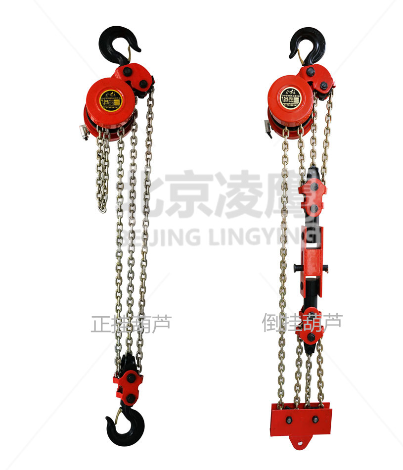 可以說群吊倒掛葫蘆是正掛葫蘆的升級版,主要是為了解決正掛葫蘆在使用中遇到的困難。正掛爬架葫蘆機頭與架體上方連接,下吊鉤與架體下方連接,起重鏈輪逆時針旋轉,提升架體,每提升一層都需要重新掛架體或者需要借助鋼絲繩提升,總體來講要么不方便要么借用鋼絲繩不太安全。而之后倒掛電動葫蘆正好彌補了這種不足,倒掛葫蘆上吊點與架體上方連接,絲杠彈簧用于張緊鏈條,使用時對架體不會造成壓力,使用起來方便了許多。總體來說群吊倒掛葫蘆解決了現有技術正掛環鏈電動提升機尾鏈懸掛在空間中,易跟腳手架發生纏繞導致安全事故的問題。